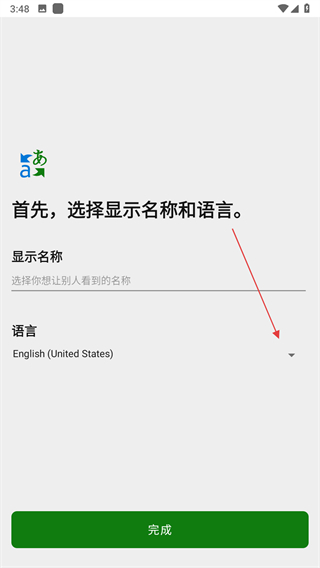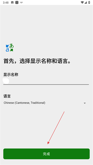 4、選擇好語言后,點(diǎn)擊完成按鈕。