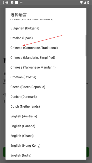 3、在彈出的選項(xiàng)框中,找到并點(diǎn)擊需要的語言。