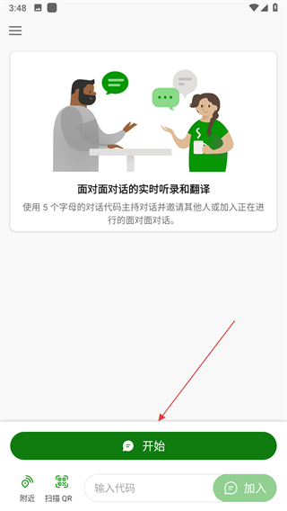 1、打開微軟翻譯app,點(diǎn)擊右上角的綠色圖標(biāo)。