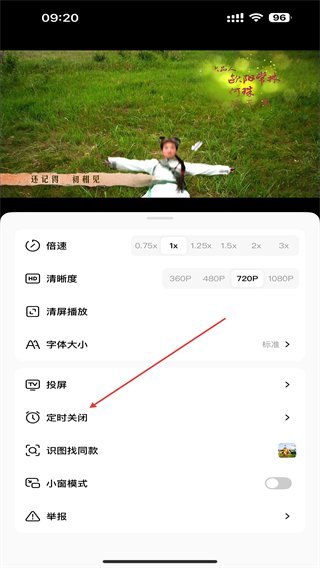 3、在下方彈出的菜單欄中,找到并點(diǎn)擊定時關(guān)閉的功能按鈕。