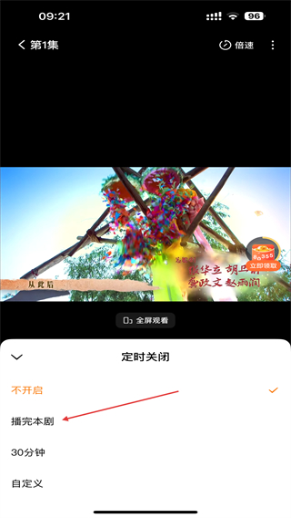 4、在選項(xiàng)中,選擇并點(diǎn)擊播完本劇的按鈕即可完成定時。