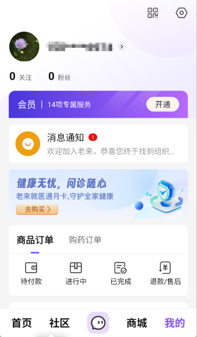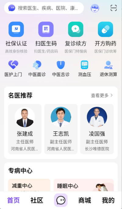 1、首先打開下載好的老來健康A(chǔ)PP,進(jìn)入軟件后在首頁的位置可以看到許多的功能服務(wù),有社保認(rèn)證、掃醫(yī)生碼、復(fù)診續(xù)方、開方購藥等服務(wù);