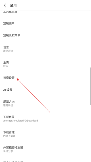 4、在通用頁(yè)面,點(diǎn)擊搜索設(shè)置選項(xiàng)。