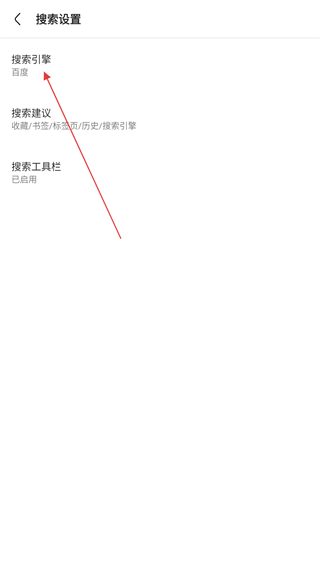5、在搜索設(shè)置頁(yè)面,點(diǎn)擊搜索引擎選項(xiàng)。