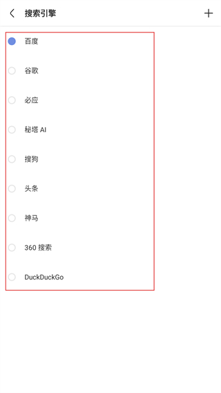6、在搜索引擎頁(yè)面,選擇想要的搜索引擎。