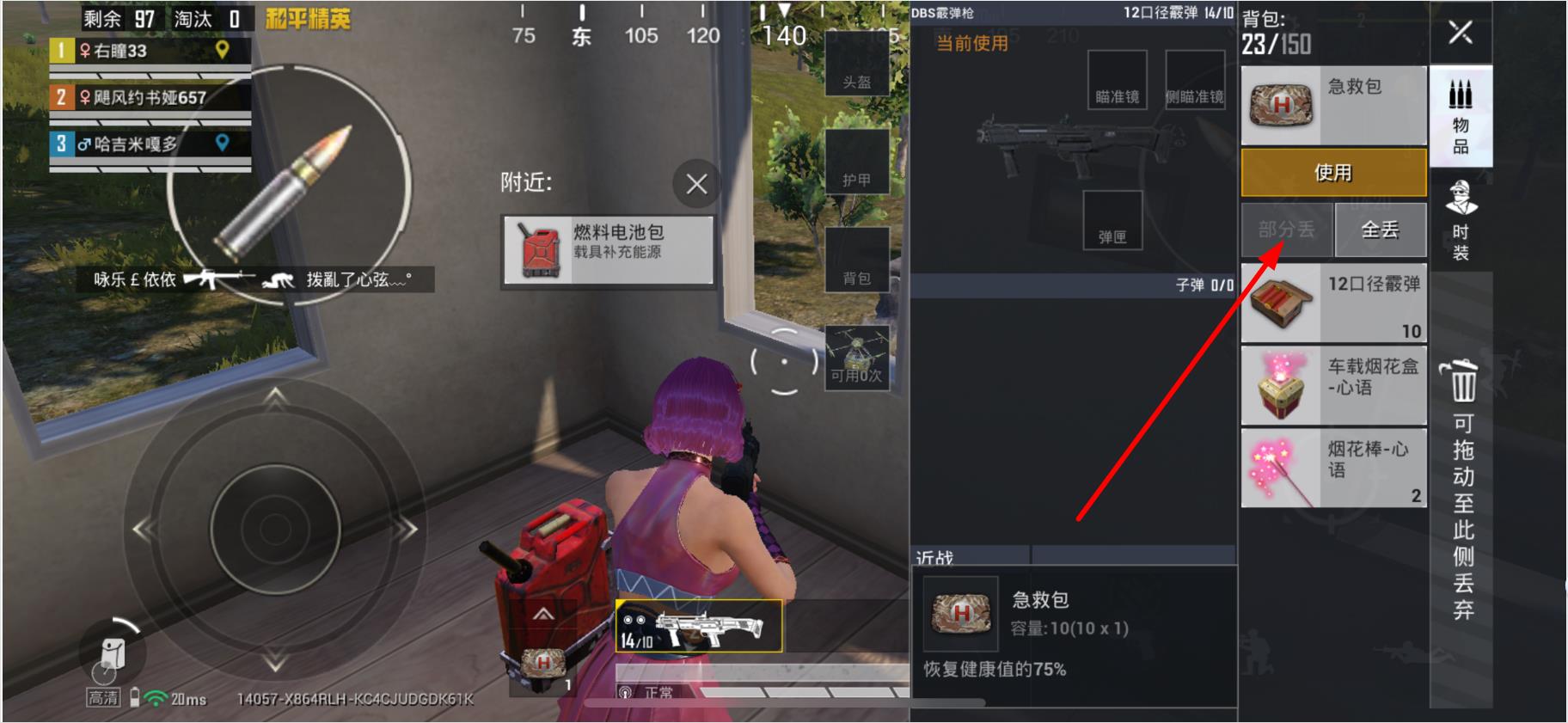 3、點(diǎn)擊部分丟選項(xiàng),然后選擇或輸入想要丟棄的物品數(shù)量,即可丟棄一定數(shù)量的物品。