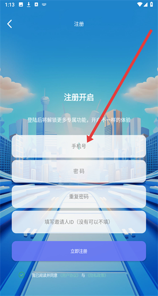3、在注冊(cè)頁面依次輸入手機(jī)號(hào)碼、密碼、重復(fù)密碼。