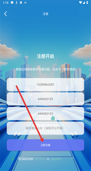 4、輸入完成后點(diǎn)擊“立即注冊(cè)”按鈕,完成賬號(hào)注冊(cè)。