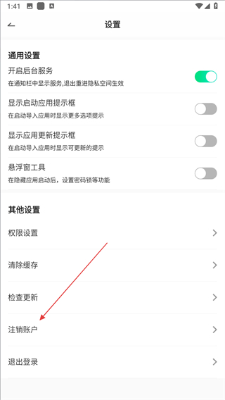 3、進入設置頁面后,點擊注銷賬戶選項。