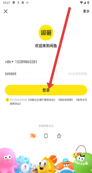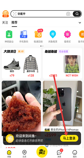 2、在進入到閑魚首頁后,可以點擊上方馬上登錄按鈕,觸發(fā)登錄操作。
