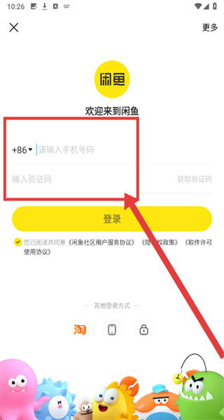 3、跳轉(zhuǎn)到登錄頁面中時,需點擊輸入框填寫手機號以及獲取到的驗證碼信息。