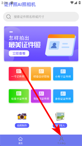 1、打開證件照AI照相機應(yīng)用,點擊底部的個人中心選項。