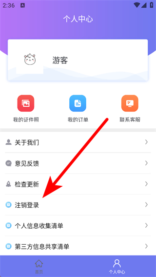 2、在個人中心頁面,點擊注銷登錄選項。
