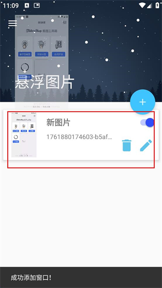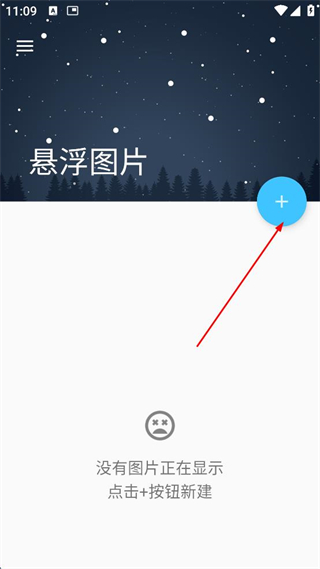 1、打開懸浮圖片APP,點擊藍(lán)色“+”按鈕新建圖片。