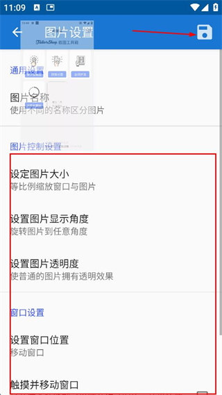 3、進入圖片設(shè)置對照片進行編輯,設(shè)置完成后點擊保存按鈕。