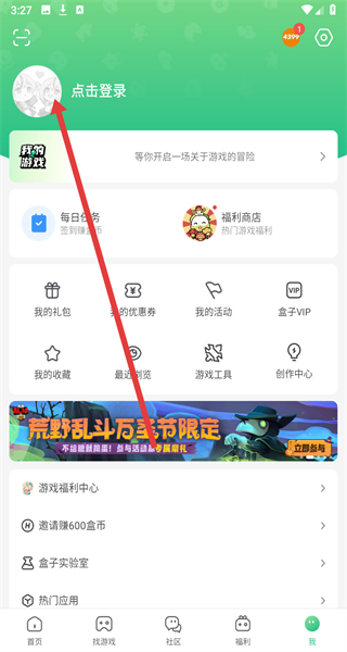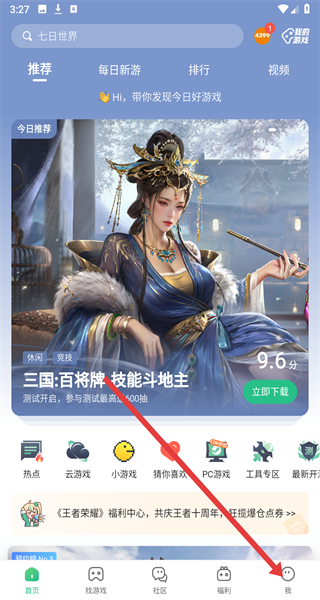 1、打開4399游戲盒子,在這個盒子中的首頁界面,點擊右下角的【我】進入到玩家的個人主頁;