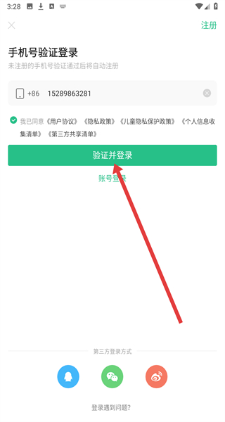 3、在跳轉(zhuǎn)到登錄頁面時,可以填寫手機號點擊驗證并登錄按鈕,進行登錄。