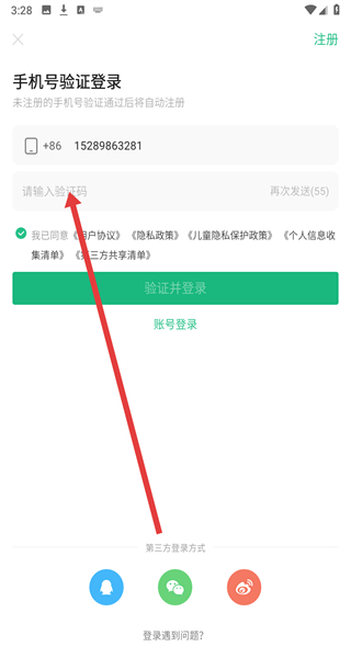 4、在獲取到驗證碼后,點擊輸入框填寫驗證碼再點擊驗證登錄按鈕,完成登錄操作。