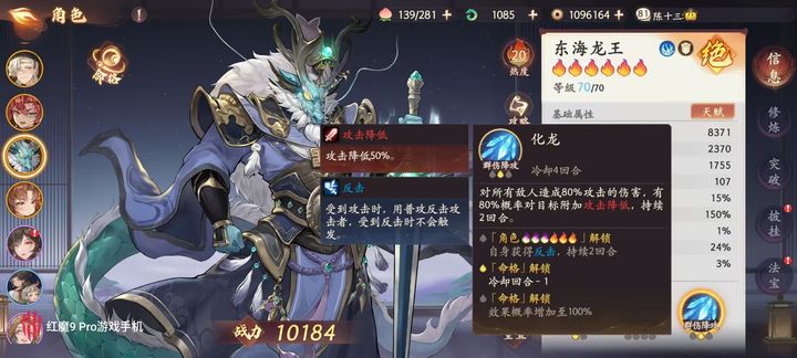 這里小白龍是核心輸出,命格解鎖50%反擊,三星解鎖雨刺,而其他都是為他服務(wù)的,算是極致四保一陣容,其中巨靈被動(dòng)分?jǐn)倐?,地藏減防,女兒國主加防加血,東海龍王抗揍,三星東海龍王解鎖反擊,小熊加肉盾。PS:三星龍王可替換成三星閻羅,這里看個(gè)人運(yùn)氣而定,配圖因?yàn)槲覜]有東海和閻羅,所以用了托塔代替一下。