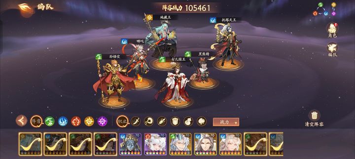 這里,核心是游戲自送的高星猴哥,配合一星哪吒,解鎖同排暴擊加成,然后在配合地藏減防收割,前排熊和孔雀減冷卻加盾,至于備用小白鼠可以替換成加強(qiáng)收割的嫦娥,又或是換成走一速流玉面狐貍,這樣PK劇情兩不耽誤。