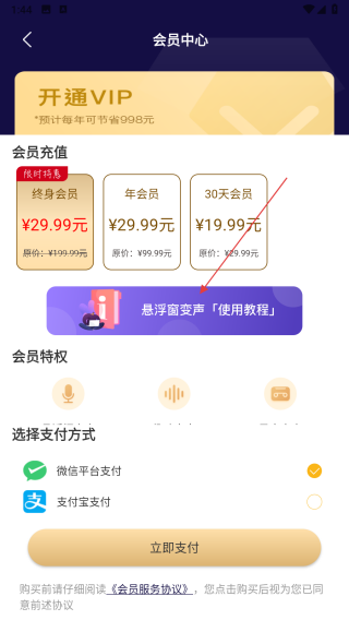 2、自動(dòng)進(jìn)入會(huì)員中心頁面,懸浮窗變聲使用教程按鈕,點(diǎn)擊該按鈕。