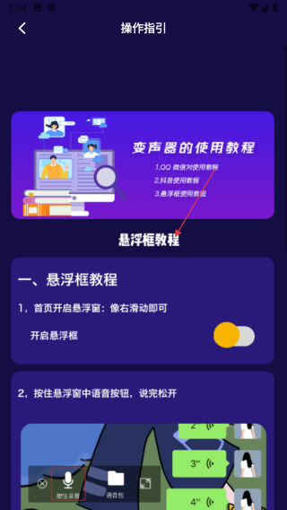 3、在操作教程頁面,點(diǎn)擊懸浮框教程,進(jìn)入懸浮框操作指引頁面。