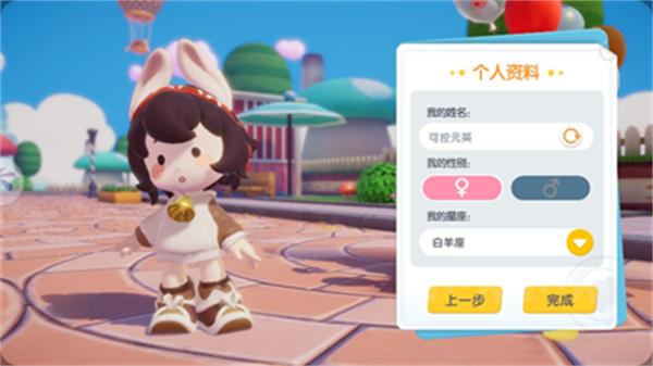3、選擇好角色形象后進行個人資料的填寫,還可以選擇不同的性別;