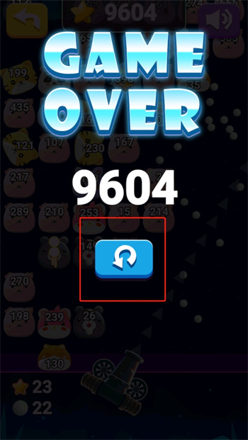 4、在結(jié)束的時(shí)候可以收獲到消除中所收獲的獎(jiǎng)勵(lì),失敗之后可以點(diǎn)擊下方的按鍵,繼續(xù)開啟自己的游戲挑戰(zhàn),來(lái)到下一次的挑戰(zhàn)消除中;
