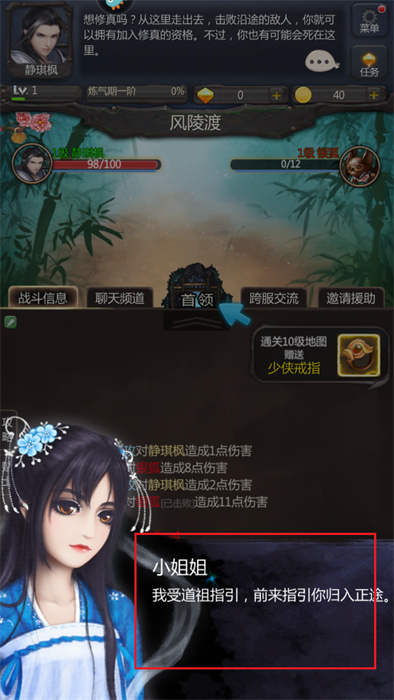 3、此時玩家將會來到江湖之中,可以點擊下方的對話框來進行對話的推進;