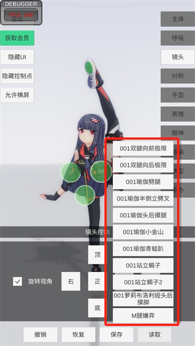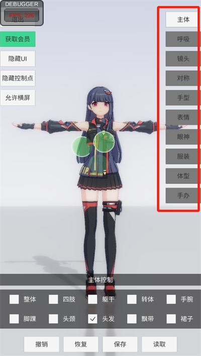3、在這里還可以看到一些控制點的移動,這里可以控制角色的頭發(fā)方向和位置變化;