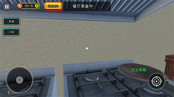 5、準(zhǔn)備完畢后,玩家需要及時(shí)的點(diǎn)擊左側(cè)的【菜譜】按鈕,以進(jìn)行菜品的選擇,并順利的開(kāi)啟店鋪的營(yíng)業(yè);