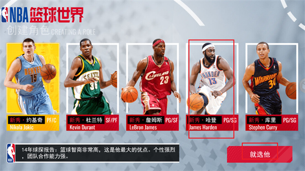 2、需要進(jìn)行球員的選擇,可以點(diǎn)擊一個(gè)你喜歡的球員,選擇好之后,點(diǎn)擊屏幕右下角的【就選他】按鈕;
