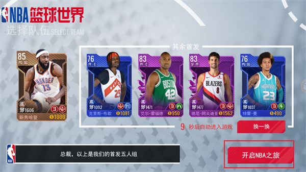 3、此時(shí)你的球員已經(jīng)選擇完畢,可以點(diǎn)擊屏幕右下角的【開(kāi)啟NBA之旅】按鈕,以開(kāi)啟球場(chǎng)上的競(jìng)技;