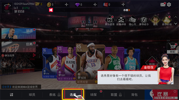 4、進(jìn)入到球場(chǎng)之中后,玩家還將可以參與到一些選秀之中去,可以點(diǎn)擊屏幕下方的【選秀】按鈕;