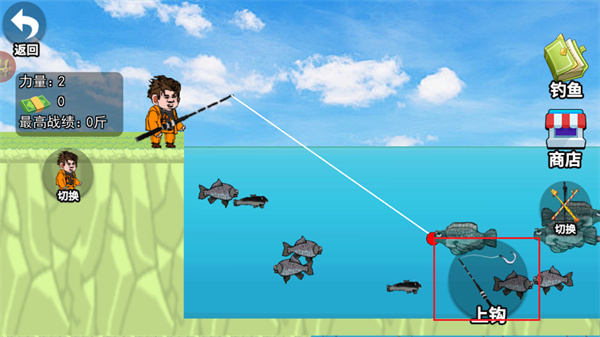 5、當(dāng)魚類上鉤之后,玩家將需要不斷的點(diǎn)擊【上鉤】按鈕,以確保小魚能夠被玩家拉上來;