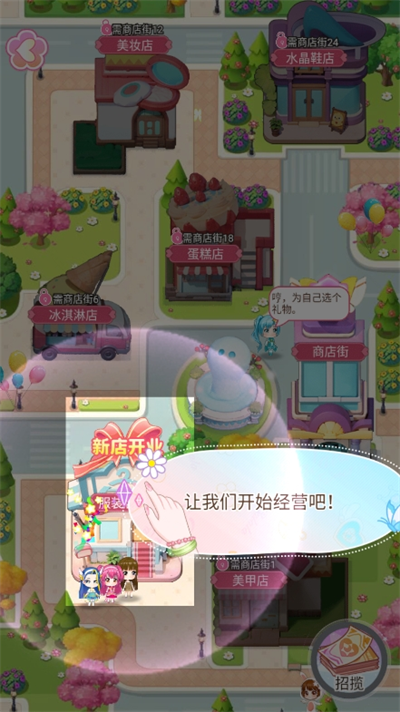 1、一開始我們就可以看到自己開設(shè)了一家服裝店,我們需要去商業(yè)街揭開自己的開幕式;