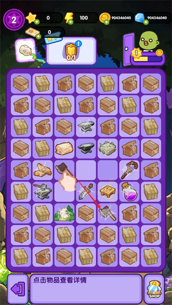 成功完成一個(gè)合成的時(shí)候,周圍所有格子里面的箱子都會(huì)被解鎖出來(lái),清空更多的格子;
