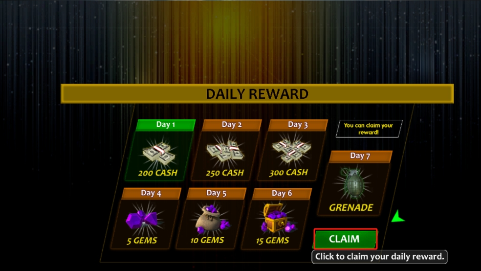 1、點(diǎn)擊【CLAIM】領(lǐng)取第一天的獎(jiǎng)勵(lì),收獲現(xiàn)金以在這個(gè)世界中獲得更多精彩內(nèi)容,后續(xù)的獎(jiǎng)勵(lì)領(lǐng)取愈加的豐富,堅(jiān)持簽到領(lǐng)取豐富獎(jiǎng)勵(lì);