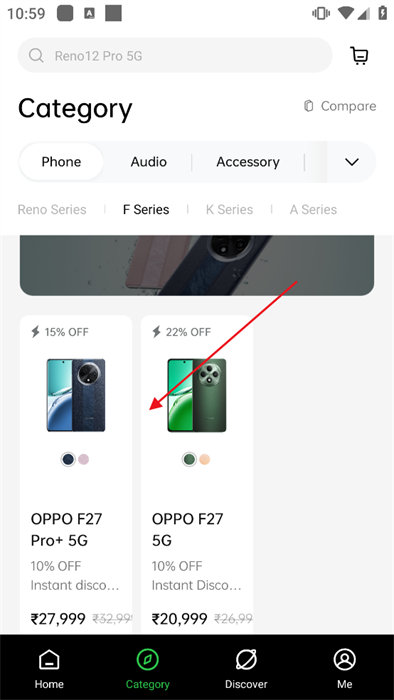 2、隨后,切換到手機分類頁面,直觀的了解到不同型號設(shè)備內(nèi)的區(qū)別;