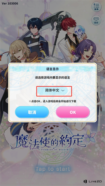 2、選擇好所需要的語言顯示后,點擊ok進入游戲后將會自動開始進行下載;