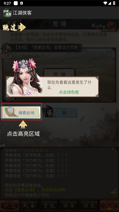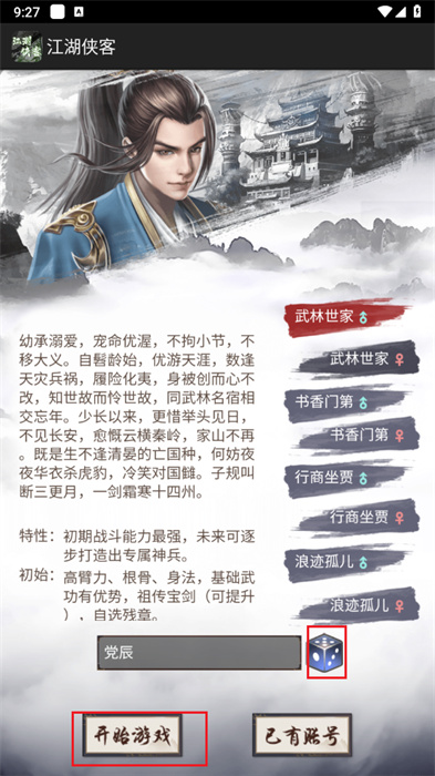 1、點擊屏幕之中的【開始游戲】按鈕,以正式的進(jìn)入到文字武俠的世界;