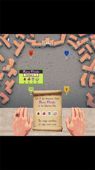 3、隨后玩家將可以看見王國的城墻之下有著四個不同的派系,需要通過這些派系的查看來進行各種策略的規(guī)劃;