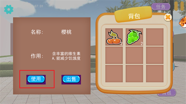 7、此時將會出現(xiàn)櫻桃的相關信息,可以點擊【使用】按鈕來進行櫻桃的食用,以此來補充體力。