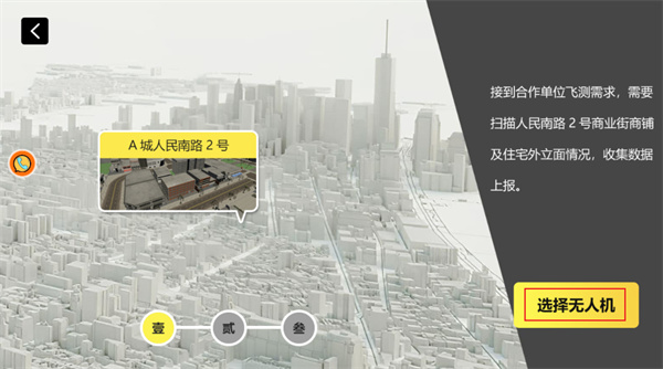 3、第一個(gè)任務(wù)為“接到合作單位非測(cè)需求,需要掃描人民南路2號(hào)商業(yè)街商鋪及住宅外立面情況,收集數(shù)據(jù)上報(bào)”;