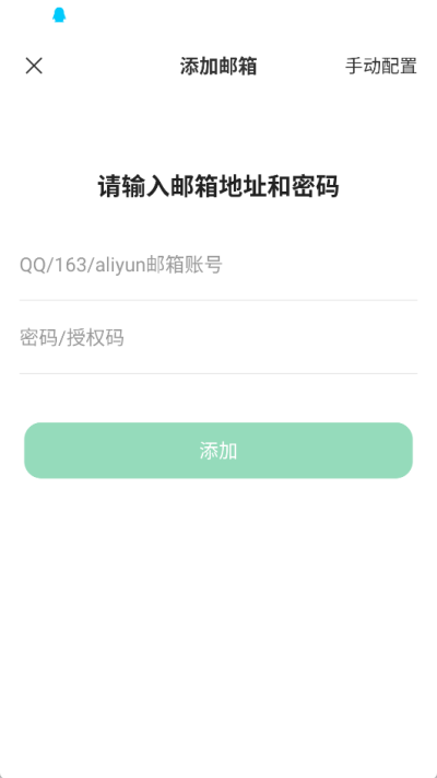 3、點擊后進入添加郵箱界面,在這里輸入郵箱地址和密碼即可成功添加。