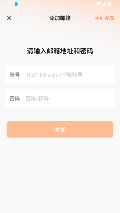 3、在里面輸入qq/163/aliyun郵箱賬號(hào)以及密碼即可,成功輸入后即可成功綁定。