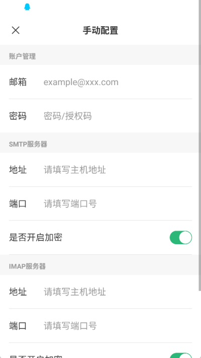 4、點擊后進(jìn)入手動配置功能界面,在這里輸入自己的郵箱賬號和密碼登信息。