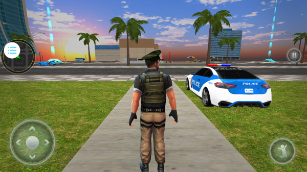 4、進(jìn)入游戲界面后可以控制角色進(jìn)行移動(dòng),靠近車輛的位置點(diǎn)擊上車按鈕即可上車;