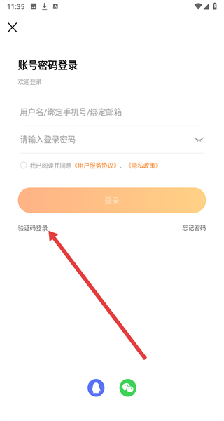 2、登錄界面點擊“驗證碼登錄”,切換至短信驗證碼登錄頁面。
