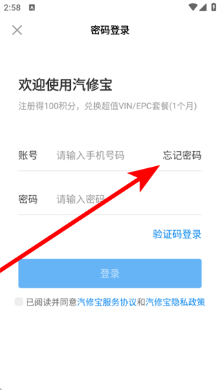 3、在密碼登錄頁面,點擊忘記密碼,進入找回密碼的頁面。